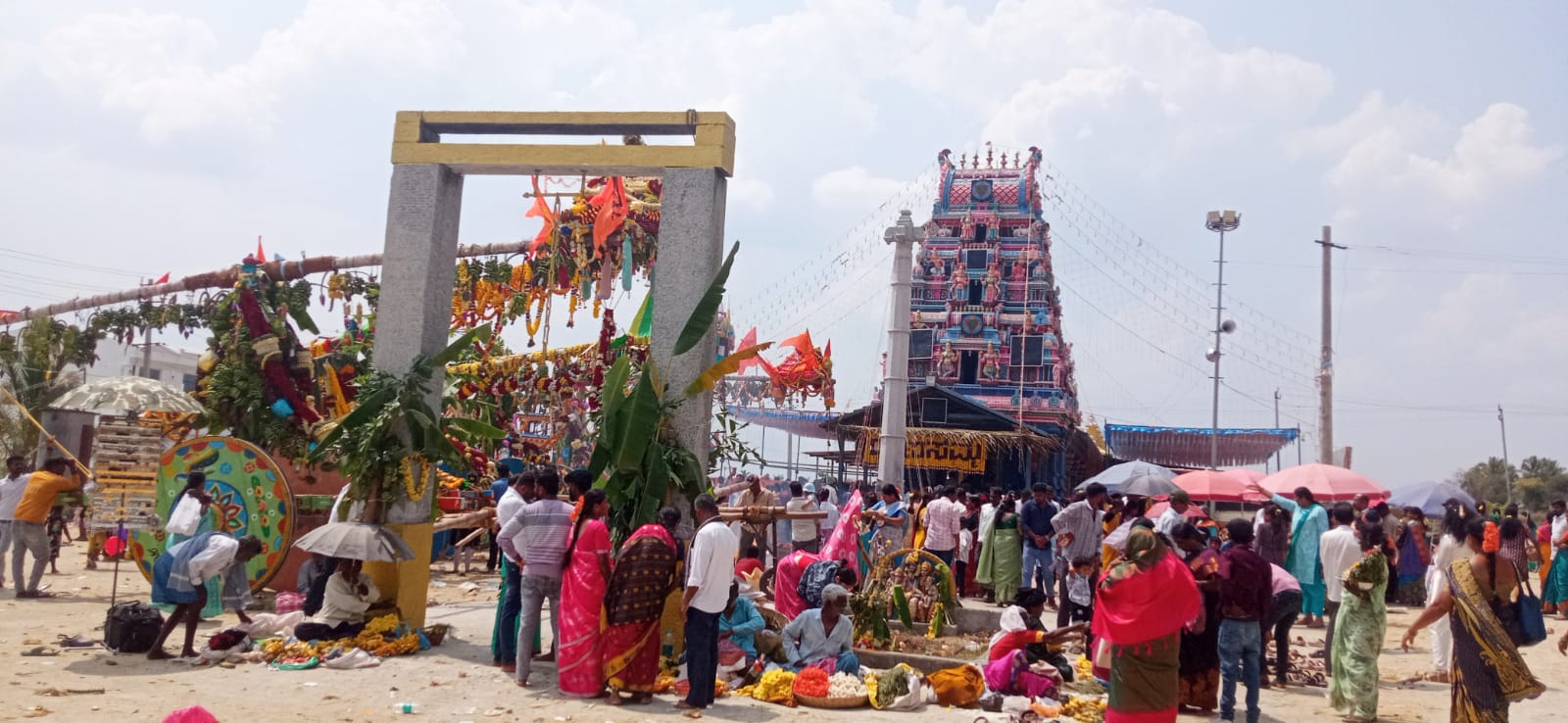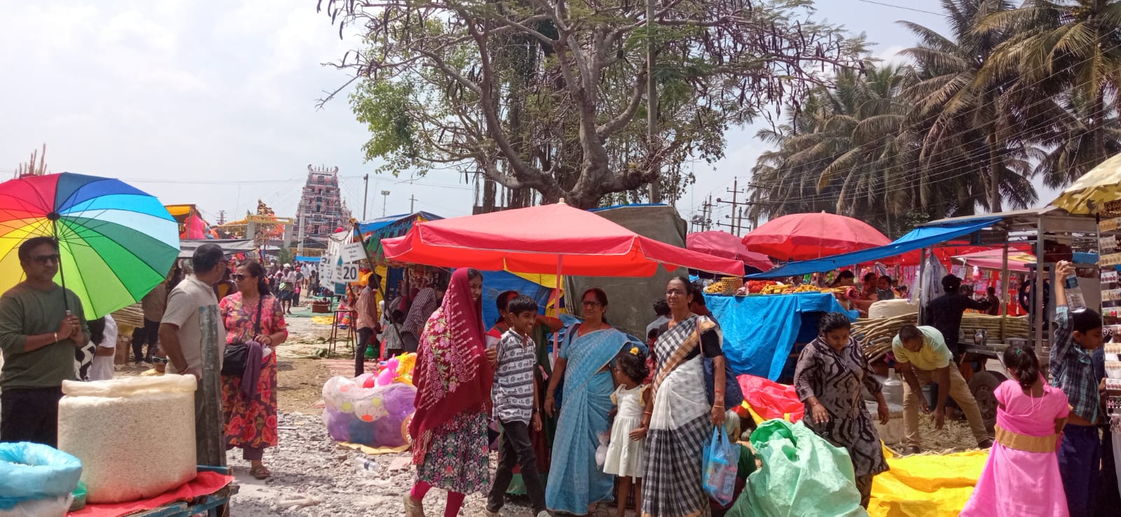 ಜನ ಅವರವರ ಊರಿನ ತೇರು-ಸಿಡಿ ಮುಂದೆ ನಿಂತು ಫೋಟೋ ತೆಗೆಸಿಕೊಳ್ಳುತ್ತಿದ್ದರು. ಜಾತ್ರೆಯಲ್ಲಿ ಕಬ್ಬಿನ ಹಾಲಿನ ಅಂಗಡಿಗಳು, ಪುರಿ-ಖಾರ ಅಂಗಡಿಗಳು ತುಂಬಿದ್ದವು. ಬಳೆ, ಪ್ಲಾಸ್ಟಿಕ್ ಆಟಿಕೆ ಸಾಮಾನುಗಳ ಅಂಗಡಿಗಳು ಸಾಲಾಗಿ ಹರಡಿಕೊಂಡಿದ್ದವು. ‘ಕಾಂತಿ, ಯಾವ ವರ್ಷವೂ ಇಷ್ಟು ಅಂಗಡಿಗಳು ಬಂದಿರಲಿಲ್ಲ’ ಎಂದು ಹೇಳಿದ ಮಡದಿ ಅಲ್ಲೇ ಗಂಟೆಗಟ್ಟಲೆ ನಿಂತಳು. ನಾನು ಬಿಸಿಲಿನಲ್ಲಿ ಸುಸ್ತಾದೆ. ಅಲ್ಲೊಂದು ಹಳೆಯ ಅರಳಿಮರ ಬಿಟ್ಟರೆ ಬೇರೆ ಮರಗಿಡಗಳಿಲ್ಲ. ಅಂಗಡಿಯ ಮುಂದೆ ಸುಮ್ಮನೆ ನಿಲ್ಲಲು ಬಿಡುವರೇ? ಕಬ್ಬಿನ ಹಾಲಿನವನು ಕೇಳಿಯೇ ಬಿಟ್ಟ: “ಸಾರ್, ನಮ್ಮಲ್ಲೇ ನೆರಳಿತ್ತು. ಇಲ್ಲಿ ನೀವು ಕಬ್ಬಿನ ಹಾಲು ಕುಡಿಯುವುದು ಬಿಟ್ಟು ಬಿಸಿಲಿನಲ್ಲಿ ನಿಂತಿದ್ದೀರಲ್ಲಾ, ಇದು ಸರಿಯೇ?” ಎಂದು. ಅವನ ಅಂಗಡಿ ಮುಂದೆ ಇನ್ನು ನಿಲ್ಲುವುದು ಸರಿಯಲ್ಲವೆಂದು ಅಲ್ಲಿಂದ ಜಾಗ ಖಾಲಿ ಮಾಡಿದೆವು.