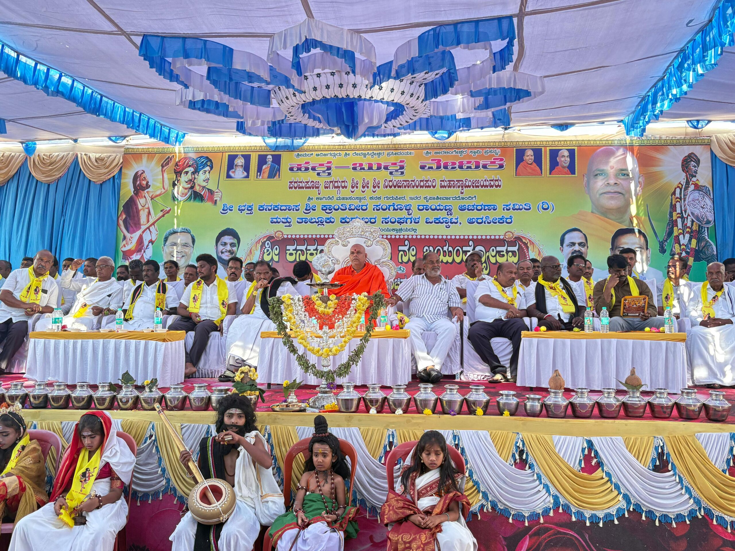 ಅರಸೀಕೆರೆ- ನಗರದ ಹಳೇ ಸರ್ಕಾರಿ ಮಾಧ್ಯಮಿಕ ಶಾಲಾ ಆವರಣದಲ್ಲಿ ಭಕ್ತ ಕನಕದಾಸರವರ 538ನೇ ಅದ್ದೂರಿ ಜಯಂತಿ ಮಹೋತ್ಸವ ಹಾಗೂ ಕ್ರಾಂತಿವೀರ ಸಂಗೊಳ್ಳಿ ರಾಯಣ್ಣರವರ ಕಂಚಿನ ಪುತ್ಥಳಿ ನಿರ್ಮಾಣದ ಗುದ್ದಲಿ ಪೂಜೆ ಕಾರ್ಯಕ್ರಮಗಳು ಭಾನುವಾರ ಏಕಕಾಲದಲ್ಲಿ ಜರುಗಿದವು. ಕಾರ್ಯಕ್ರಮದಲ್ಲಿ ಸಂಸದ ಶ್ರೇಯಸ್ ಪಟೇಲ್ ಅವರು ಭಾಗವಹಿಸಿ ಮಹನೀಯರ ಸ್ಮರಣೆಯನ್ನು ಮಾಡಿದರು.