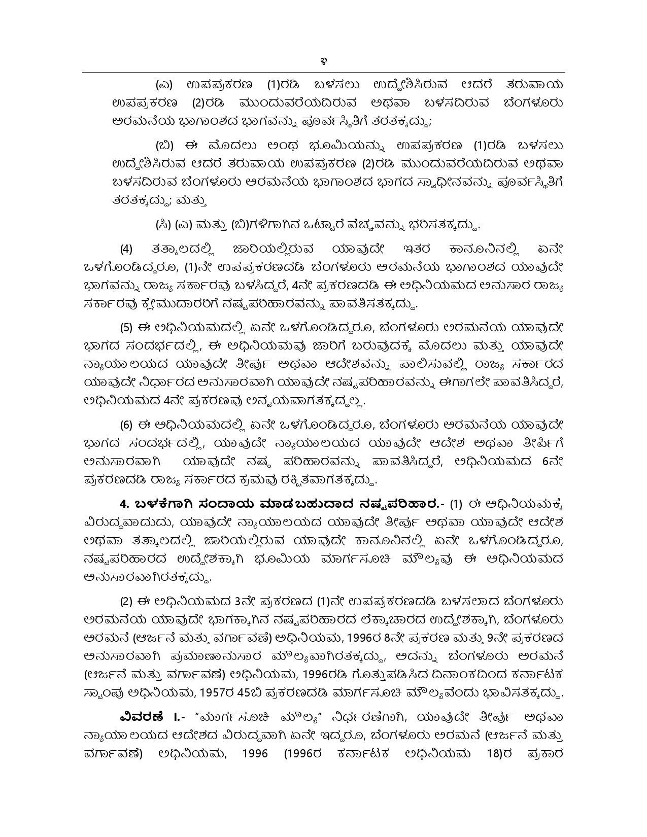 ಮತ್ತು ಮಾನ್ಯ ಸರ್ವೋಚ್ಚ ನ್ಯಾಯಾಲಯದ ತೀರ್ಪು ರಾಜ್ಯ ಸರ್ಕಾರದ ಬೊಕ್ಕಸದ ಮೇಲೆ ಹಾಗೂ ಬೆಂಗಳೂರು ನಗರದ ನಗರ ಯೋಜನೆಯ ಮೇಲೆ ಗಂಭೀರವಾದ ಪರಿಣಾಮವನ್ನು ಬೀರುವುದರಿಂದ, ಮುಂದುವರೆದು ಇದು ಬೆಂಗಳೂರು ಅರಮನೆ (ಆರ್ಜನೆ ಮತ್ತು ವರ್ಗಾವಣೆ) ಅಧಿನಿಯಮ, 1996 (1996ರ ಕರ್ನಾಟಕ ಅಧಿನಿಯಮ 18)ರ ಅನುಸಾರ ನಿರ್ಧರಿಸಲಾದ ಒಟ್ಟು ನಷ್ಟ ಪರಿಹಾರಕ್ಕೆ ಸುಸಂಗತವಾಗದಿರುವುದರಿಂದ;