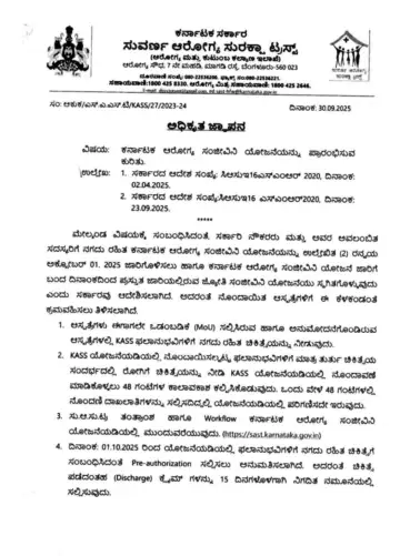 ಈ ಕುರಿತು ಹೊರಡಿಸಿದ ಸರ್ಕಾರಿ ಆದೇಶದಲ್ಲಿ, ಸರ್ಕಾರಿ ನೌಕರರು ಮತ್ತು ಅವರ ಅವಲಂಬಿತರಿಗೆ KASS ಯೋಜನೆಯಡಿ ನಗದುರಹಿತ ಚಿಕಿತ್ಸೆ ಲಭ್ಯವಾಗಲಿದೆ ಎಂದು ಸ್ಪಷ್ಟಪಡಿಸಲಾಗಿದೆ.