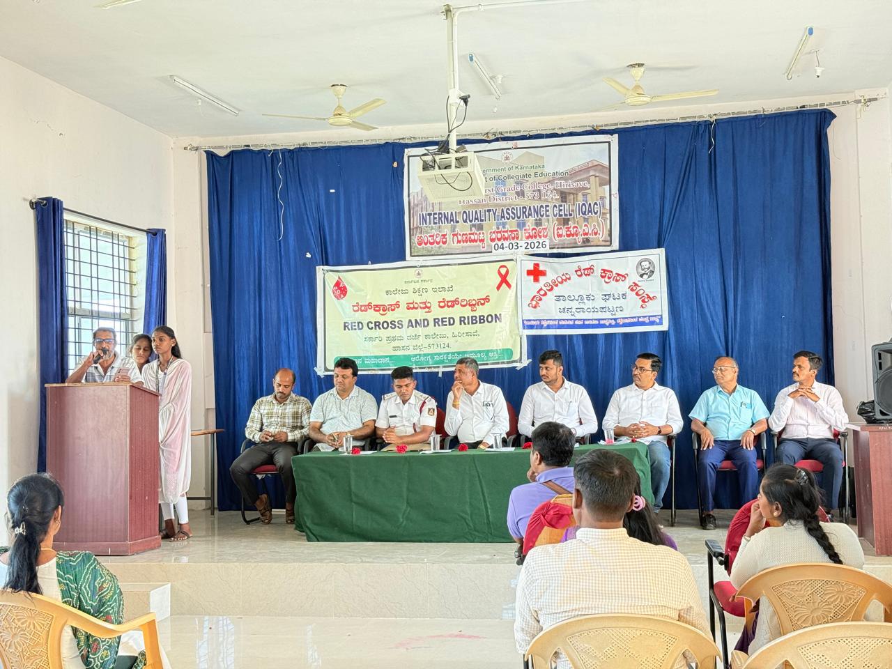 ಕಾರ್ಯಕ್ರಮವನ್ನು ಭಾರತೀಯ ರೆಡ್ ಕ್ರಾಸ್ ಸಂಸ್ಥೆ ಚನ್ನರಾಯಪಟ್ಟಣ ತಾಲ್ಲೂಕು ಘಟಕದ ಅಧ್ಯಕ್ಷರಾದ ಭರತ್ ಕುಮಾರ್ ಹೆಚ್.ಜಿ ಅವರು ವೇದಿಕೆಯ ಗಣ್ಯರೊಂದಿಗೆ ಉದ್ಘಾಟಿಸಿದರು. ಕಾರ್ಯಕ್ರಮದ ಅಧ್ಯಕ್ಷತೆಯನ್ನು ಹಿರೀಸಾವೆಯ ಸರ್ಕಾರಿ ಪ್ರಥಮ ದರ್ಜೆ ಕಾಲೇಜಿನ ಪ್ರಾಂಶುಪಾಲರಾದ ಲಕ್ಷ್ಮಣಗೌಡ ಬಿ.ಹೆಚ್ ವಹಿಸಿದ್ದರು.