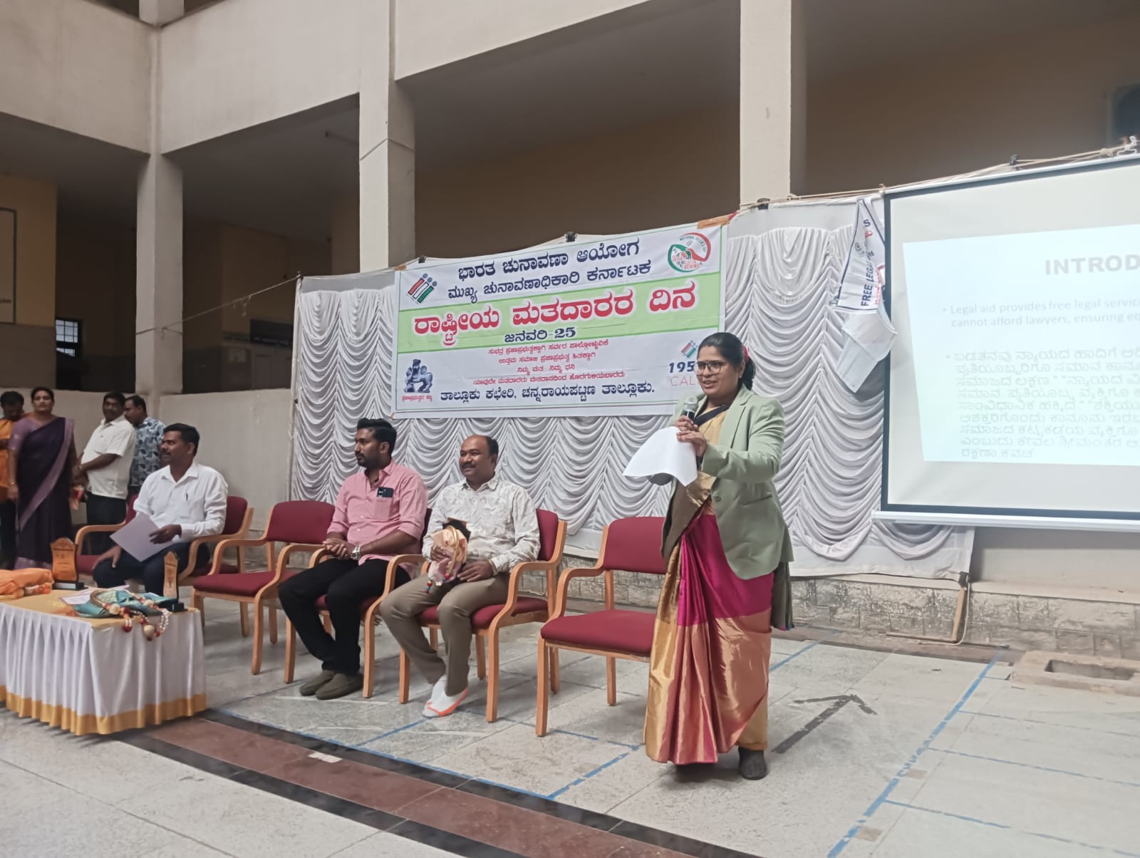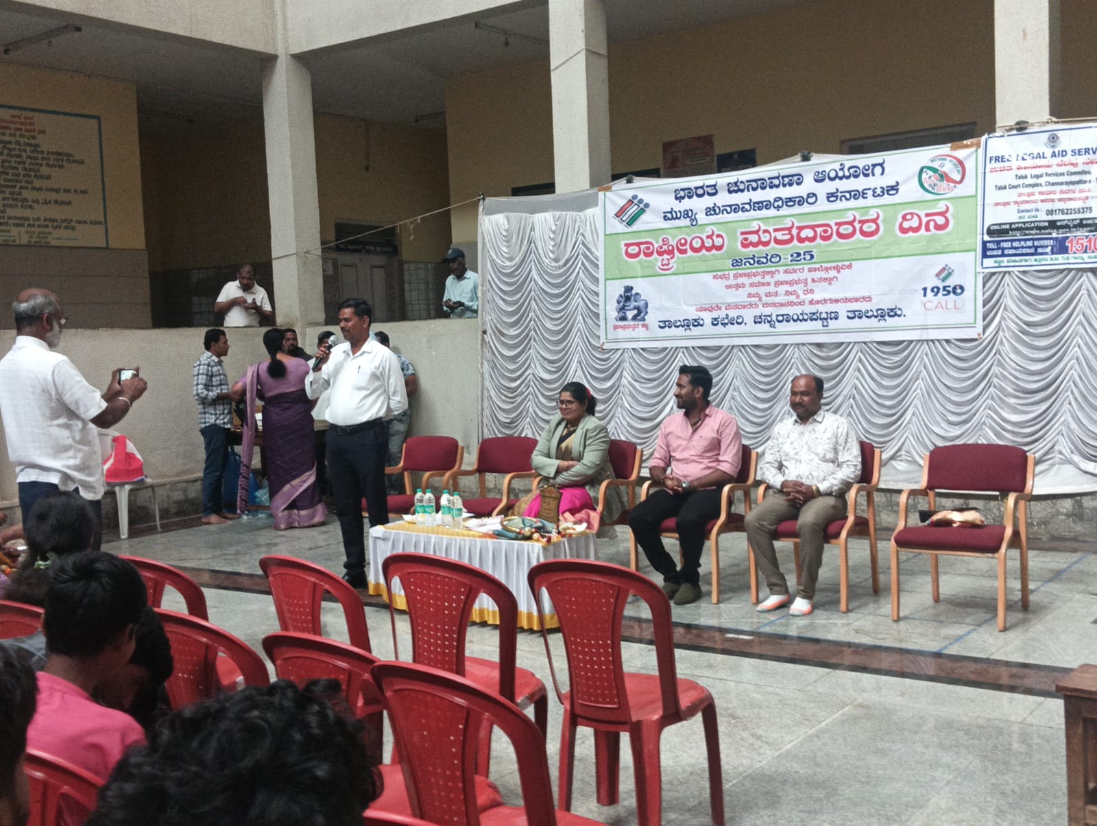 ಈ ಕಾರ್ಯಕ್ರಮದಲ್ಲಿ ನ್ಯಾಯಾಧೀಶರಾದ ಶ್ರೀಮತಿ ಅರುಣ ಕುಮಾರಿ, ತಹಶೀಲ್ದಾರ್ ಜೆ ಎಸ್ ಶಂಕರಪ್ಪ , ಸಿರಸ್ತೆದಾರ್ ಅನಿಲ್ ಕುಮಾರ್, ಚುನಾವಣಾ ಶಾಖೆಯ ಪ್ರಥಮ ದರ್ಜೆ ಸಹಾಯಕ ಅಧಿಕಾರಿಗಳಾದ ಶ್ರೀಮತಿ ಜಯಲಕ್ಷ್ಮಿ, ತಾಲೂಕು ವಕೀಲರ ಸಂಘದ ಜಂಟಿ ಕಾರ್ಯದರ್ಶಿಗಳಾದ ಚೇತನ್, ಶಿಕ್ಷಕರಾದ ಬೈರೇಶ್, ಸೇರಿದಂತೆ ವಿವಿಧ ಇಲಾಖೆಗಳ ಅಧಿಕಾರಿಗಳು ಹಾಜರಿದ್ದರು.