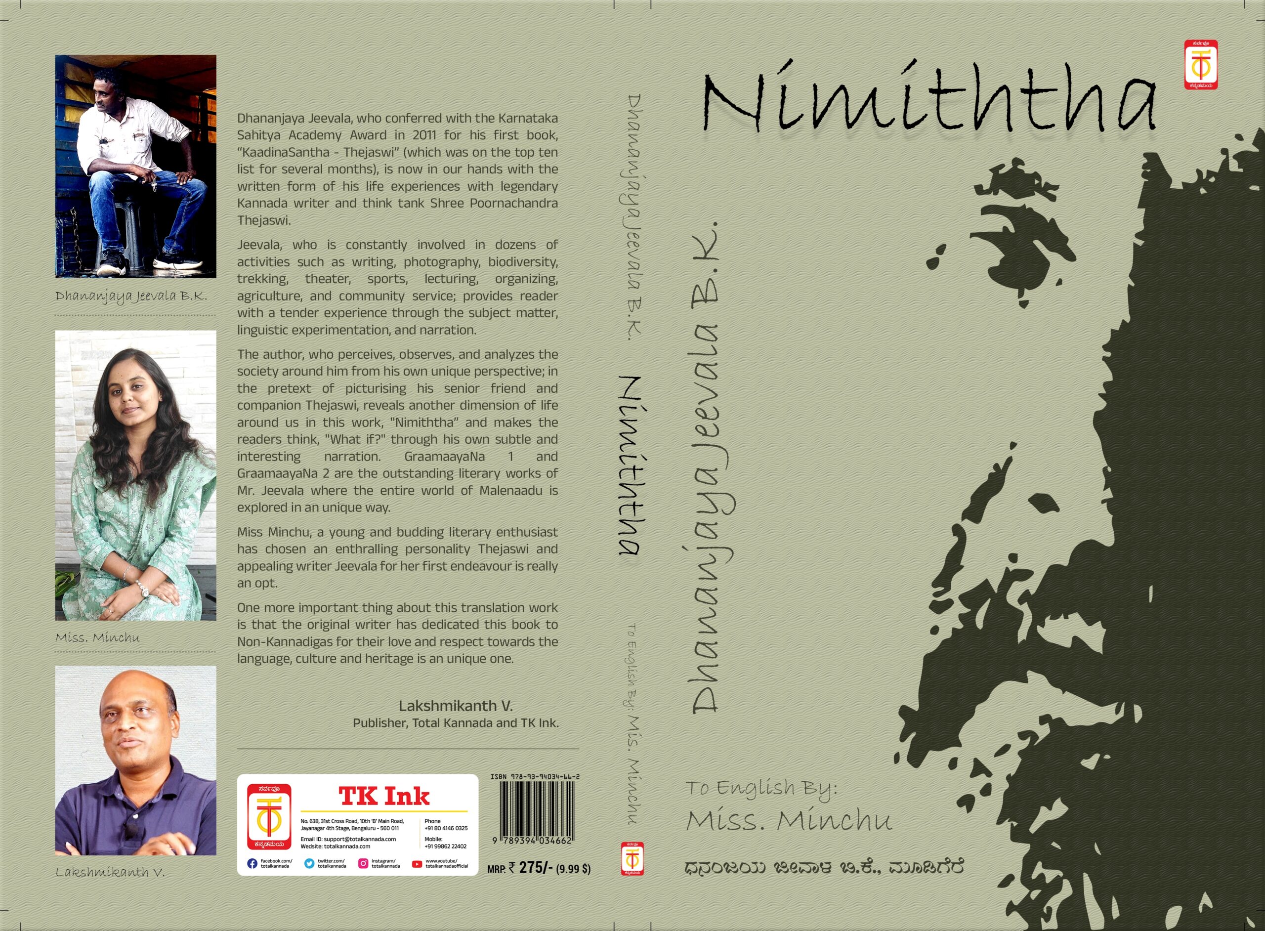 ಧನಂಜಯ ಜೀವಾಳರವರು ಕನ್ನಡದಲಿ ಬರೆದಿದ್ದ “ತೇಜಸ್ವಿ ನನಗೆ ನಿಮಿತ್ತ” ಪುಸ್ತಕದ ಇಂಗ್ಲೀಷ್ ಆವೃತ್ತಿ ‘NIMITHTHA‘ ಇತ್ತೀಚೆಗೆ ಬೆಂಗಳೂರಿನ ಬನಶಂಕರಿಯ ಸುಚಿತ್ರ ಫಿಲ್ಮ್ ಸೊಸೈಟಿಯಲ್ಲಿ ಬಿಡುಗಡೆಯಾಯಿತು.