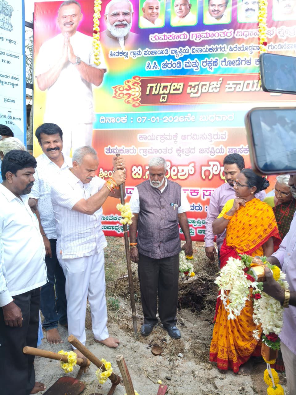 ತುಮಕೂರು ತಾಲೂಕಿನ ಊಡಿಗೆರೆ ಹೋಬಳಿಯ ಸೀತಕಲ್ಲು ಗ್ರಾಮ ಪಂಚಾಯತಿ ವ್ಯಾಪ್ತಿಯ ವಿನಾಯಕ ನಗರ, ಹಿರೇ ದೊಡ್ಡವಾಡಿ, ಗುಂಡಿನ ಪಾಳ್ಯ, ಮುಖ್ಯರಸ್ತೆಯ ಪಕ್ಕದಲ್ಲಿ ಸಿಸಿ ಚರಂಡಿ ಮತ್ತು ರಕ್ಷಣಾ ಗೋಡೆ ನಿರ್ಮಾಣ ಕಾಮಗಾರಿಯು ಒಂದು ಕೋಟಿ ವೆಚ್ಚದಲ್ಲಿ ಸಿ.ಸಿ. ಚರಂಡಿ ಮತ್ತು ರಕ್ಷಣಾ ಗೋಡೆ ಕಾಮಗಾರಿಗೆ ಗುದ್ದಲಿ ಪೂಜೆ ನೆರವೇರಿಸಿ ಕಾಮಗಾರಿಗೆ ಚಾಲನೆ ನೀಡಿದರು.