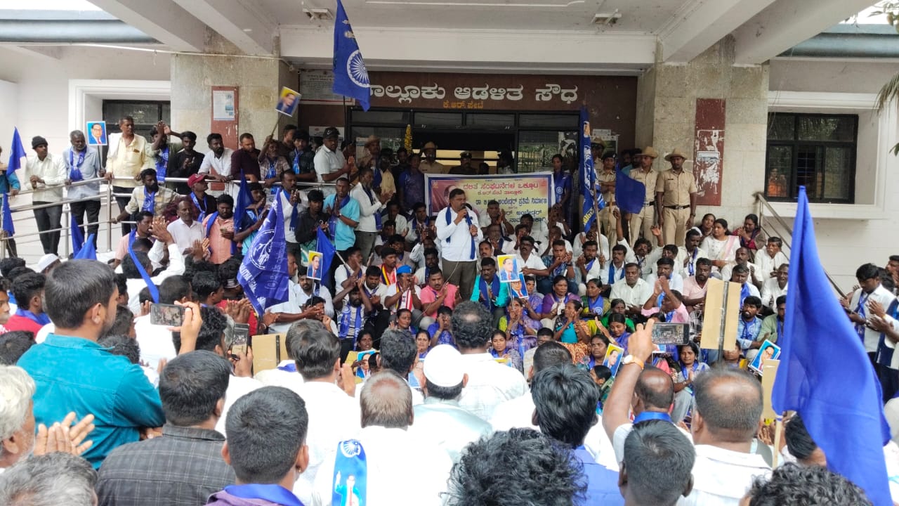 ಪ್ರತಿಭಟನೆಯ ನಂತರ ತಾಲ್ಲೂಕು ಗ್ರೇಡ್-1 ತಹಸೀಲ್ದಾರ್ ಲೋಕೇಶ್ ಅವರಿಗೆ ಮನವಿ ಸಲ್ಲಿಸಿದರು. ಪ್ರತಿಭಟನೆಗೆ ಡಾ.ಬಿ.ಆರ್.ಅಂಬೇಡ್ಕರ್ ಅನುಯಾಯಿ ಮುಸ್ಲಿಂ ಯುವಕರ ಸಂಘದ ಸದಸ್ಯರೂ ಸಹ ಬೆಂಬಲ ಸೂಚಿಸಿ ಭಾಗವಹಿಸಿದ್ದರು.