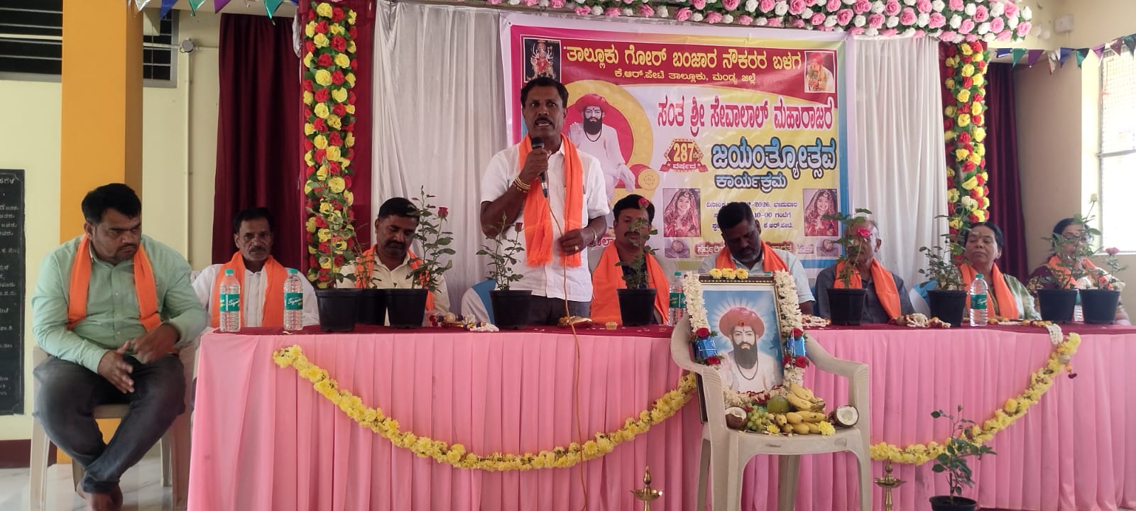 287ನೇ ಶ್ರೀ ಸಂತ ಸೇವಾಲಾಲ್ ಜಯಂತಿ ಪ್ರಯುಕ್ತ ಕೆ.ಆರ್.ಪೇಟೆ ಪಟ್ಟಣದಲ್ಲಿರುವ ತಾಲ್ಲೂಕಿನ ಗೋರ್ ಬಂಜಾರ ನೌಕರರ ಬಳಗದ ವತಿಯಿಂದ ಕೆ.ಆರ್.ಪೇಟೆ ತಾಲ್ಲೂಕು ಶಿಕ್ಷಕ ಭವನದಲ್ಲಿ ಸಂತ ಸೇವಾಲಾಲ್ ಭಾವಚಿತ್ರಕ್ಕೆ ಪುಷ್ಪಾರ್ಚನೆ ಮಾಡುವ ಮೂಲಕ ಗೌರವಿಸಿ ಮಾತನಾಡಿದರು.ಸಂತ ಸೇವಾಲಾಲ್ ಮಹಾರಾಜರ ಜಯಂತಿಯು ಬಂಜಾರ ಸಮಾಜದ ಸಾಂಸ್ಕೃತಿಕ ಹಾಗೂ ಧಾರ್ಮಿಕ ಸಂಕೇತವಾಗಿದೆ.ಸಂತ ಸೇವಾಲಾಲ್ ಅವರು ಬಂಜಾರ ಸಮಾಜದ ಆರಾಧ್ಯ ದೈವ ದಾರ್ಶನಿಕ ಮತ್ತು ಸಮಾಜ ಸುಧಾರಕರು 1739 ಫೆಬ್ರವರಿ15ರಂದು ಜನಿಸಿದ ಅವರು ಸಮಾಜದಲ್ಲಿನ ಅಜ್ಞಾನ ಮತ್ತು ಮೂಢನಂಬಿಕೆಗಳನ್ನು ತೊಡೆದುಹಾಕಲು ಶ್ರಮಿಸಿದ ಮಹಾನ್ ಪುರುಷರು,ಈ ನಮ್ಮ ದೇಶದ ನೆಲ ಸಾಂಸ್ಕೃತಿಕ ವೈವಿಧ್ಯತೆಯಲ್ಲಿ ಏಕತೆಯನ್ನು ಹೊಂದಿದ್ದು ಈ ವೈವಿಧ್ಯತಾ ಸಂಸ್ಕೃತಿಗೆ ಹಲವಾರು ಸಾಂಸ್ಕೃತಿಕ ರಾಯಭಾರಿಗಳು ಕಾರಣೀಭೂತರು,ಭಾರತ ನೆಲದಲ್ಲಿ ಹಲವು ಸಂತರು, ಧರ್ಮ ಸುಧಾರಕರು, ತತ್ವಜ್ಞಾನಿಗಳು ಜನ್ಮ ತಾಳಿ ಜನರಲ್ಲಿನ ತಮಂಧತೆಯನ್ನು ಹೋಗಲಾಡಿಸಿದ್ದಾರೆ.ಇಂತಹ ಮಹಾನ್ ಸಂತರುಗಳಲ್ಲಿ ಸದ್ಗುರು ಸಂತ ಸೇವಾಲಾಲ್ ಮಹಾರಾಜರು ಒಬ್ಬರು ಎಂದರು.