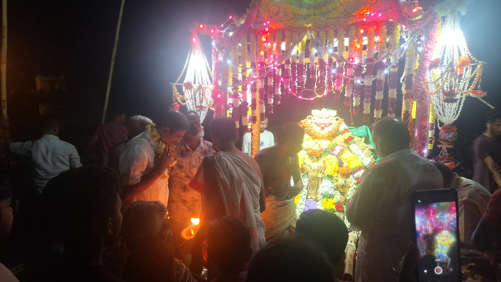 ಈ ಸುಂದರ ದೃಶ್ಯಗಳನ್ನು ಕಣ್ತುಂಬಿಕೊಳ್ಳಲು ಬಂದ ಭಕ್ತಾದಿಗಳಿಗೆ ಶ್ರೀ ಸುರಕ್ಷಾ ಗ್ರೂಪ್ ವತಿಯಿಂದ ಅನ್ನ ಸಂತರ್ಪಣೆ ಏರ್ಪಡಿಸಿದ್ದ ಅನ್ನ ಸಂತರ್ಪಣೆಯನ್ನು *ಸಮಾಜ ಸೇವಕ ಆರ್ಟಿಓ ಮಲ್ಲಿಕಾರ್ಜುನ್* ರವರು ಭಕ್ತರಿಗೆ ಅನ್ನ ಸಂತರ್ಪಣೆ ಬಡಿಸುವ ಮೂಲಕ ಚಾಲನೆ ನೀಡಿದರು.