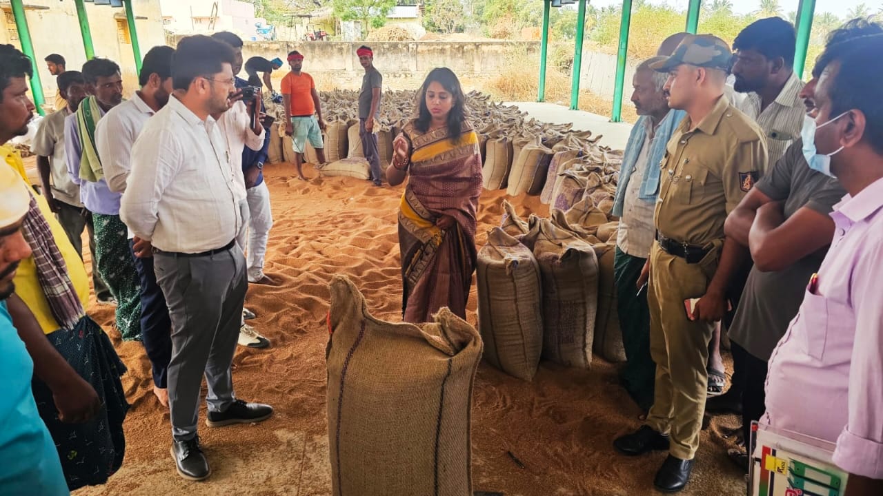 ರಾಗಿ ಕೇಂದ್ರಕ್ಕೆ ಬರುವ ರೈತರಿಗೆ ಯಾವುದೇ ಸಮಸ್ಯೆಗಳಾಗದಂತೆ ತೂಕದಲ್ಲಿ ವ್ಯತ್ಯಾಸ ಮಾಡಬಾರದು ಮತ್ತು ಮೂಲಭೂತ ಸೌಕರ್ಯಗಳನ್ನು ನೀಡಬೇಕು. ರಾಗಿ ಕೇಂದ್ರದಲ್ಲಿ ತೂಕದಲ್ಲಿ ವ್ಯತ್ಯಾಸ ಲೇಬರ್ಗಳ ಸಮಸ್ಯೆ ಮತ್ತು ರೈತರಿಂದ ಹಣವನ್ನು ಪಡೆಯುತ್ತಿದ್ದಾರೆ ಎಂಬ ಮಾಹಿತಿಯ ಮೇರೆಗೆ ಇಂದು ತಾವು ಖುದ್ದಾಗಿ ಬಂದು ರೈತರ ಸಮ್ಮುಖದಲ್ಲಿ ತೂಕವನ್ನು ವೀಕ್ಷಿಸಿ ಅಧಿಕಾರಿಗಳಿಗೆ ತೂಕದಲ್ಲಿ ವ್ಯತ್ಯಾಸ ಮಾಡಬೇಡಿ ರೈತರಿಗೆ ಮೋಸ ಮಾಡಬೇಡಿ ಎಂದು ಹೇಳಿದರು ನಿಗದಿಯದ ಪ್ರತಿ ಮೂಟೆಗೆ 50 ಕೆಜಿ ಮಾತ್ರ ರಾಗಿಯನ್ನು ತೂಕ ಮಾಡಬೇಕು ಎಂದು ಹೇಳಿದರು ಮಾರಾಟ ಕೇಂದ್ರದಲ್ಲಿ ಬಂದಿದ್ದ ರೈತರರಲ್ಲಿ ಡಿಸಿ ಅವರು ನಿಮ್ಮಗಳಿಗೆ ಯಾವುದಾದರೂ ತೂಕದಲ್ಲಾಗಲಿ ಬೆಲೆಯಲಾಗಲಿ ವ್ಯತ್ಯಾಸವಾದರೆ ನಮಗೆ ತಿಳಿಸಿ ನಾವು ಸೂಕ್ತ ಕ್ರಮ ತೆಗೆದುಕೊಂಡು ರೈತರಿಗೆ ಅನುಕೂಲವಾಗುವಂತೆ ನಿಮ್ಮ ಜೊತೆ ನಾವು ಇರುತ್ತೇವೆ ಎಂದು ರೈತರಿಗೆ ಧೈರ್ಯ ಹೇಳಿದರು. ಮತ್ತು ಇನ್ನು ನೋಂದಣಿಯಾಗದ ರೈತರು ರಾಗಿ ಬೆಳೆಗಾರರು ನೋಂದಣಿ ಮಾಡಿಕೊಂಡು ಮಾರಾಟವಾದ ರಾಗಿಯ ಹಣವನ್ನು ತಮ್ಮ ಖಾತೆಗಳಿಗೆ ಜಮ.ಮಾಡುವುದಾಗಿ ತಿಳಿಸಿದರು ಈ ರಾಗಿ ಕೇಂದ್ರವನ್ನು ಶಾಸಕರು ಅಕ್ಕಿರಾಂಪುರದಲ್ಲಿ ಪ್ರಾರಂಭಿಸಿದ್ದರಿಂದ ಈ ಭಾಗದ ಜನರಿಗೆ ರೈತರಿಗೆ ತುಂಬಾ ಅನುಕೂಲವಾಗಿದೆ ಎಂದು ಹೇಳಿದರು. ಜಿಲ್ಲಾಧಿಕಾರಿಯೊಂದಿಗೆ ಕೊರಟಗೆರೆ ತಾಶಿಲ್ದಾರ್ ಮಂಜುನಾಥ್ ಕೆ ರವರು ಭಾಗಿಯಾಗಿ ರೈತರ ಸಮಸ್ಯೆಗಳನ್ನು ಆಲಿಸಿ ಯಾವುದೇ ತೊಂದರೆಯಾಗದಂತೆ ವಹಿವಾಟುವನ್ನು ನಡೆಸುವುದಾಗಿ ಹೇಳಿದರು.
