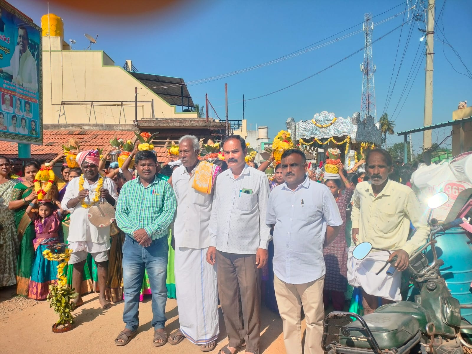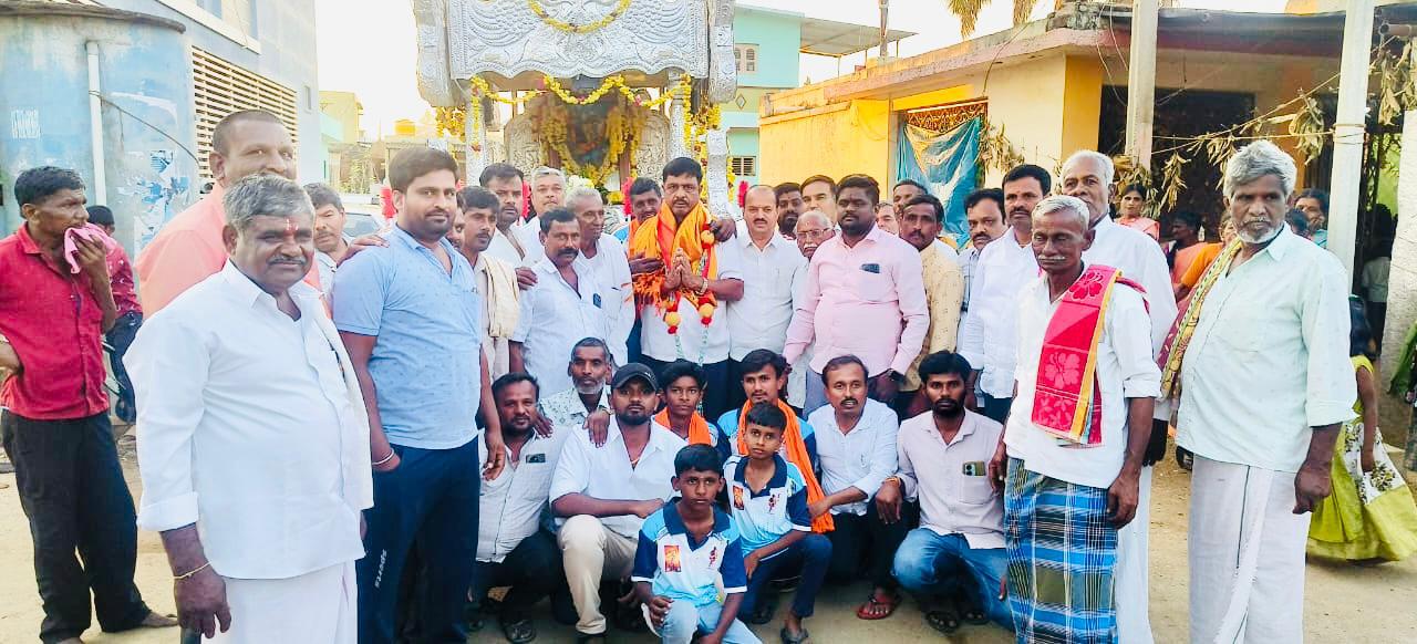 ಭಕ್ತ ಶ್ರೇಷ್ಠ ಕನಕದಾಸರ ಭಾವಚಿತ್ರವನ್ನು ವಿದ್ಯುತ್ ದೀಪಾಲಂಕೃತ ಬೆಳ್ಳಿ ರಥದ ಮುತ್ತಿನ ಪಲ್ಲಕ್ಕಿಯ ಪಡಿಯಲ್ಲಿ ಕೋರಿಸಿಕೊಂಡು ಪೂರ್ಣ ಕುಂಭ ಕಳಸ ದೊಂದಿಗೆ ಗ್ರಾಮದ ಪ್ರಮುಖ ರಾಜ ಬೀದಿಗಳಲ್ಲಿ ನಾಸಿಕ್ ಡೊಳ್ಳು ವಾದ್ಯ ಹಾಗೂ ವೀರಗಾಸೆ ಕುಣಿತ ದೊಂದಿಗೆ ಮೆರವಣಿಗೆ ಮಾಡಲಾಯಿತು.