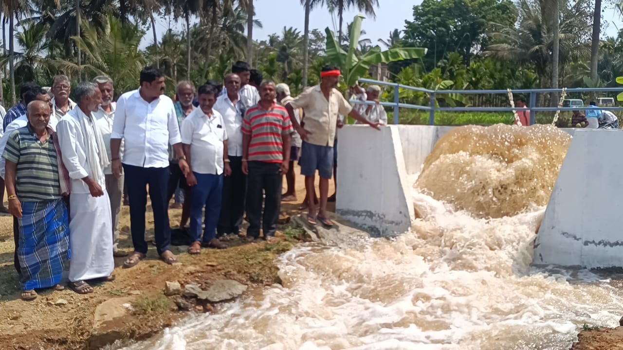 ತಾಲ್ಲೂಕಿನ ಮೊಸಳೇಕೊಪ್ಪಲು ಗ್ರಾಮದ ಬಳಿ ನಿರ್ಮಿಸಿರುವ ಎರಡನೇ ಹಂತದ ಏತ ನೀರಾವರಿ ಯೋಜನೆಯ ಪಂಪ್ ಹೌಸ್ ಕೇಂದ್ರವನ್ನು ವೀಕ್ಷಣೆ ಮಾಡಿ ನಂತರ ಶೀಳನೆರೆ ಹೋಬಳಿಯ ಭೈರಾಪುರ ಕೆರೆಗೆ ಪ್ರಾಯೋಗಿಕವಾಗಿ ನೀರು ತುಂಬಿಸುವ ಕಾರ್ಯವನ್ನು ಸಣ್ಣ ನೀರಾವರಿ ಅಧಿಕಾರಿಗಳು ಮತ್ತು ಭೈರಾಪುರ ಗ್ರಾಮಸ್ಥರೊಂದಿಗೆ ವೀಕ್ಷಣೆ ಮಾಡಿ ನೀರನ್ನು ಪೋಲು ಮಾಡದಂತೆ ಸಂರಕ್ಷಣೆ ಮಾಡಬೇಕು ಎಂದು ಮನವಿ ಮಾಡಿದರು.