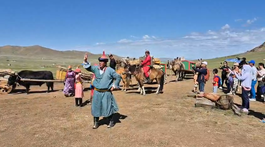 ಮಂಗೋಲಿಯ ಸಾಂಪ್ರದಾಯಕ ಉತ್ಸವ ನೋಡಲು ಚೀನಾ ಮತ್ತು ಕೋರಿಯ ದೇಶಗಳಿಂದ ಬಂದ ಪ್ರವಾಸಿಗರೇ ಹೆಚ್ಚಿನ ಸಂಖ್ಯೆಯಲ್ಲಿ ಇದ್ದರು. ಇವರ ಕಣಿವೆಯ ವಾಸ ಸ್ಥಳದಿಂದ ನಮ್ಮನ್ನು ಸ್ವಾಗತಿಸಲು ಒಂಟೆ, ಯಾಕ್ ಮತ್ತು ಕುದುರೆಯ ಮೂಲಕ ತಮ್ಮ ಸಾಂಪ್ರದಾಯಿಕ ಉಡುಗೆಯನ್ನು ತೊಟ್ಟು ಅವರ ಭಾಷೆಯಲ್ಲಿ ಸ್ವಾಗತ ಕೋರುತ್ತಾ ಕೈ ಬೀಸುತ್ತಾ ನಮ್ಮಹತ್ತಿರ ಬಂದರು. ಹತ್ತಿರ ಬಂದಾಕ್ಷಣ ಎಲ್ಲರೂ ಅವರ ಮುಂದೆ ನಿಂತು ಫೋಟೊ ತೆಗೆಸಿಕೊಂಡರು. ಇವರ ಜೊತೆಯೇ ಆವರ ಹಳ್ಳಿಗೆ ನಡೆದುಕೊಂಡು ಹೋದೆವು. ಇಲ್ಲಿ ಕುದುರೆ, ಒಂಟೆ, ಯಾಕ್ ಮತ್ತು ಗಾಡಿಗಳ ಮೂಲಕ ತಮ್ಮ ಸಾಮಾನು ಸರಂಜಾಮುಗಳನ್ನು ಒಂದು ಸ್ಥಳದಿಂದ ಇನ್ನೊಂದು ಸ್ಥಳಕ್ಕೆ ಹೇಗೆ ತೆಗೆದುಕೊಂಡು ಹೋಗುತ್ತಿದ್ದರು ಎಂಬುದರ ಶೋ ಇತ್ತು. ಅವರ ಜಾನಪದ ಶೈಲಿಯ ಹಾಡುಗಳನ್ನು ತಮ್ಮ ಪಾರಂಪರಿಕ ವಾದ್ಯಗಳಿಂದ ಹಾಡಿದರು. ಕೇಳಲು ಇಂಪಾಗಿ ಇತ್ತು ಮತ್ತು ಕುದುರೆ ಹಾಡು ಖುಷಿ ತಂದಿತ್ತು. ಇವರ ಭಾಷೆಯಲ್ಲಿ “ಚುಸ್ಸಸ್ಸಸ್ಸ” ಎಂದರೆ ಕುದುರೆಯು ಮುಂದೆ ಹೋಗುತ್ತೆ. ಓಡುತ್ತಿರುವ ಕುದುರೆಯನ್ನು ನಿಲ್ಲಿಸಲು “ಡಿರ್ರರ್ರರ್ರ” ಎನ್ನ ಬೇಕು.