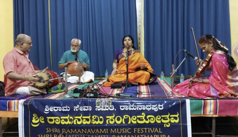 ರಾಮನಾಥಪುರ : ಜೀವನದಲ್ಲಿ ಹದತರುವ, ಮುದಕೊಡುವ ಸಂಗೀತಕಲೆ ಸದಾ ಜೀವಂತವಾಗಿರಲು ಸಂಗೀತಾರಾಧನೆ ನಿರಂತರವಾಗಿ ನಡೆಯಬೇಕು. ಅದಕ್ಕೆ ಶ್ರೋತೃಗಳು, ಬಂಧುಗಳು, ಮಿತ್ರರು ಮತ್ತು ಸಂಗೀತಾಭಿಮಾನಿಗಳ ಹೃದಯ ವೈಶಾಲ್ಯವೇ ಪ್ರಮುಖ ಕಾರಣವಾಗಿದೆ ಎಂದು ಶ್ರೀ ಪಟ್ಟಾಭಿರಾಮ ಸೇವಾ ಸಮಿತಿ ಸದಸ್ಯರಾದ ವೇ. ಶ್ರೀಮತಿ ಲಕ್ಷ್ಮಿಕಾಶಿ ತಿಳಿಸಿದರು.