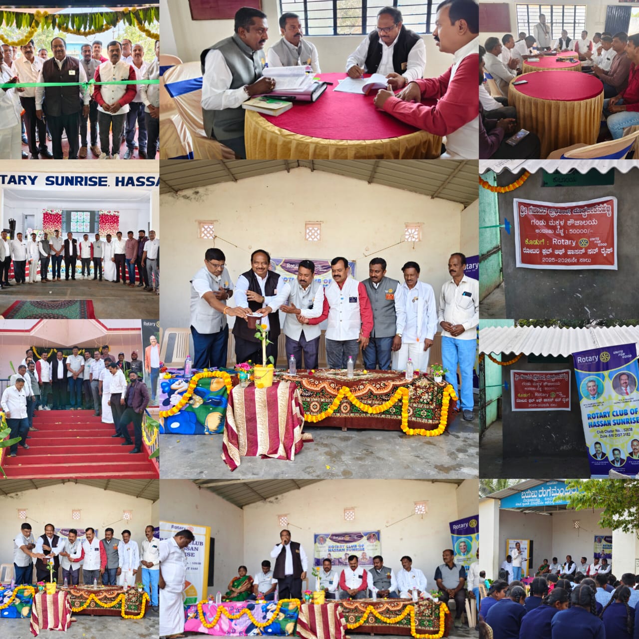 ಅದೇ ದಿನ ಮಧ್ಯಾಹ್ನ ರೋಟರಿ ಸನ್ ರೈಸ್ ಕ್ಲಬ್ ವತಿಯಿಂದ ಹಾಸನ ತಾಲ್ಲೂಕಿನ ದೊಡ್ಡ ಬೀಕನಹಳ್ಳಿ ಗ್ರಾಮದ ಶ್ರೀ ಗಜಾನನ ಪ್ರೌಢಶಾಲೆಯಲ್ಲಿ ಸುಮಾರು ₹70 ಸಾವಿರ ವೆಚ್ಚದಲ್ಲಿ ನಿರ್ಮಿಸಲಾದ ಶೌಚಾಲಯವನ್ನು ಜಿಲ್ಲಾ ಗವರ್ನರ್ ಅವರು ಉದ್ಘಾಟಿಸಿದರು. ಈ ಸಂದರ್ಭದಲ್ಲಿ ಮಾತನಾಡಿದ ಅವರು, ವಿದ್ಯಾರ್ಥಿಗಳು ನಾಯಕತ್ವ ಗುಣಗಳನ್ನು ಬೆಳೆಸಿಕೊಳ್ಳಬೇಕೆಂದು ಸಲಹೆ ನೀಡಿ, ರೋಟರಿ ಕ್ಲಬ್ನ ಸಮಾಜಮುಖಿ ಕಾರ್ಯಗಳ ಮಹತ್ವವನ್ನು ವಿವರಿಸಿದರು.