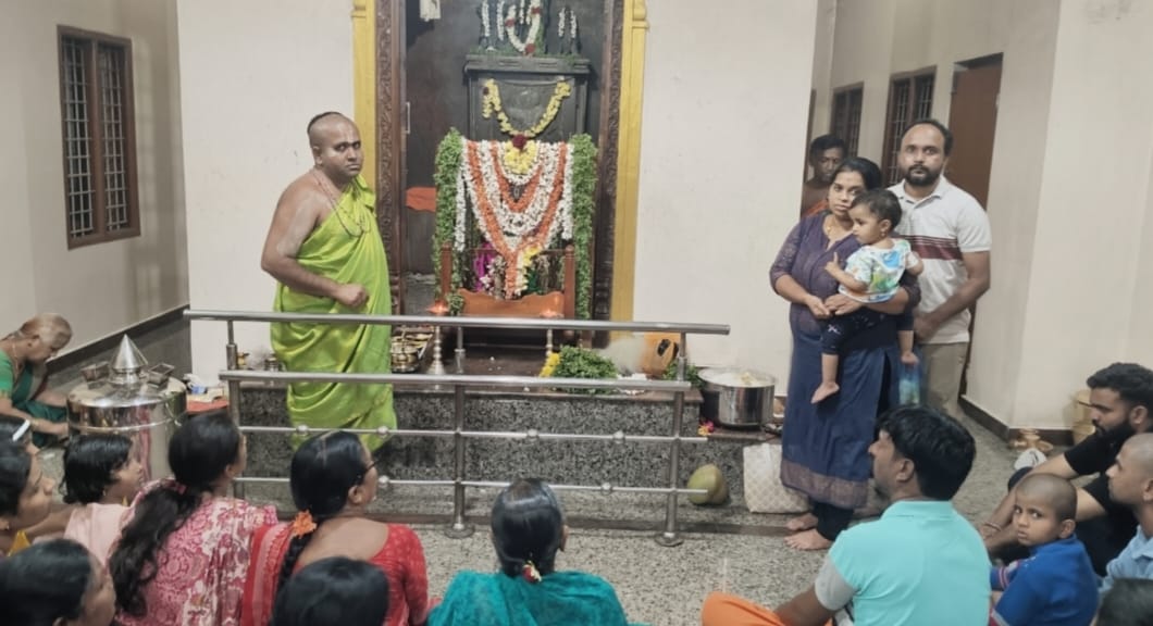 ರಾಮನಾಥಪುರ: ರಾಮನಾಥಪುರದ ಶ್ರೀ ರಾಘವೇಂದ್ರಸ್ವಾಮಿ ಮಠದಲ್ಲಿ ಗುರುವಾರ ಸಂಜೆ, ಗುರು ರಾಯರ ಉತ್ಸವ ಹಾಗೂ ವಿಶೇಷ ಪೂಜೆ ನಡೆಯಿತು. ಈ ಪೂಜೆಯನ್ನು ವೇದ ಪರಿಶೀಲನೆಗಾಗಿ ಕನಕಾಚಾರ್ಯರು ನೇರವಾಗಿ ನೆರವೇರಿಸಿದರು.