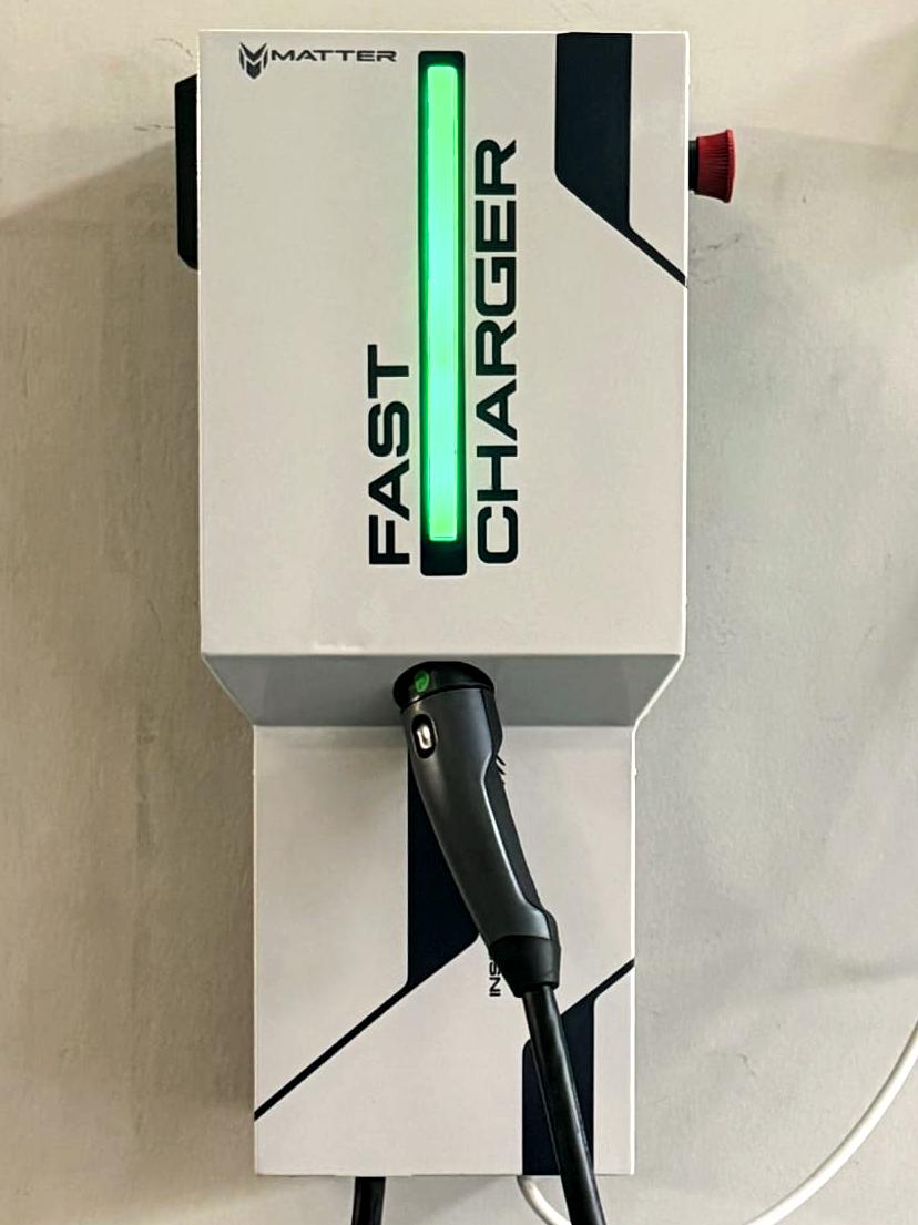 ಈ ಯೋಜನೆಯ ಹೃದಯದಲ್ಲಿ MATTER ಕಂಪನಿಯ ಇನ್-ಹೌಸ್ ಅಭಿವೃದ್ಧಿಪಡಿಸಿದ 3kW ಫಾಸ್ಟ್ ಚಾರ್ಜರ್ ಇದೆ, ಇದು MATTER AERA ಯನ್ನು 0% ರಿಂದ 80% ವರೆಗೆ ಕೇವಲ 90 ನಿಮಿಷಗಳಲ್ಲಿ ಚಾರ್ಜ್ ಮಾಡಲು ಸಾಮರ್ಥ್ಯ ಹೊಂದಿದೆ. MATTER ನ vertical integration ತತ್ವದಡಿ ವಿನ್ಯಾಸಗೊಳಿಸಲಾದ ಈ ಚಾರ್ಜರ್ ಸಂಪೂರ್ಣವಾಗಿ MATTERVerse App ಗೆ ಸಂಪರ್ಕಿತವಾಗಿದೆ, ಇದರಿಂದ ರೈಡರ್ಗಳಿಗೆ ನೇರ ಪ್ರಸಾರದ ಲಭ್ಯತೆ, ಸ್ಥಳ ಮಾಹಿತಿ ಮತ್ತು ಚಾರ್ಜಿಂಗ್ ಸ್ಥಿತಿ ದೊರಕುತ್ತದೆ, ಅನುಭವ ನಿರ್ವಿಘ್ನವಾಗುತ್ತದೆ.