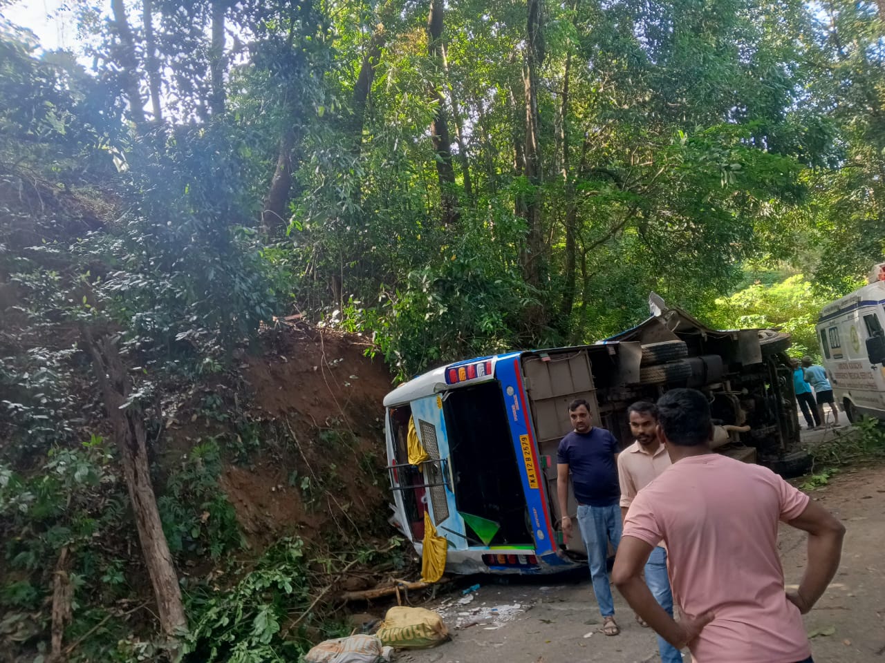 ಮಡಿಕೇರಿ/ವನಗೂರು ಗ್ರಾಮದಿಂದ ಮದುವೆ ಕಾರ್ಯಕ್ರಮಕ್ಕೆ ತೆರಳುತ್ತಿದ್ದ KA-12-B-2579 ನಂಬರಿನ ಮಿನಿ ಬಸ್ ಬಿಸಿಲೆಘಾಟ್ನ ತೀವ್ರ ತಿರುವಿನಲ್ಲಿ ಚಾಲಕನ ನಿಯಂತ್ರಣ ತಪ್ಪಿ ಪಲ್ಟಿಯಾಗಿದೆ ಎಂದು ಪ್ರಾಥಮಿಕ ಮಾಹಿತಿ ತಿಳಿಸಿದೆ.