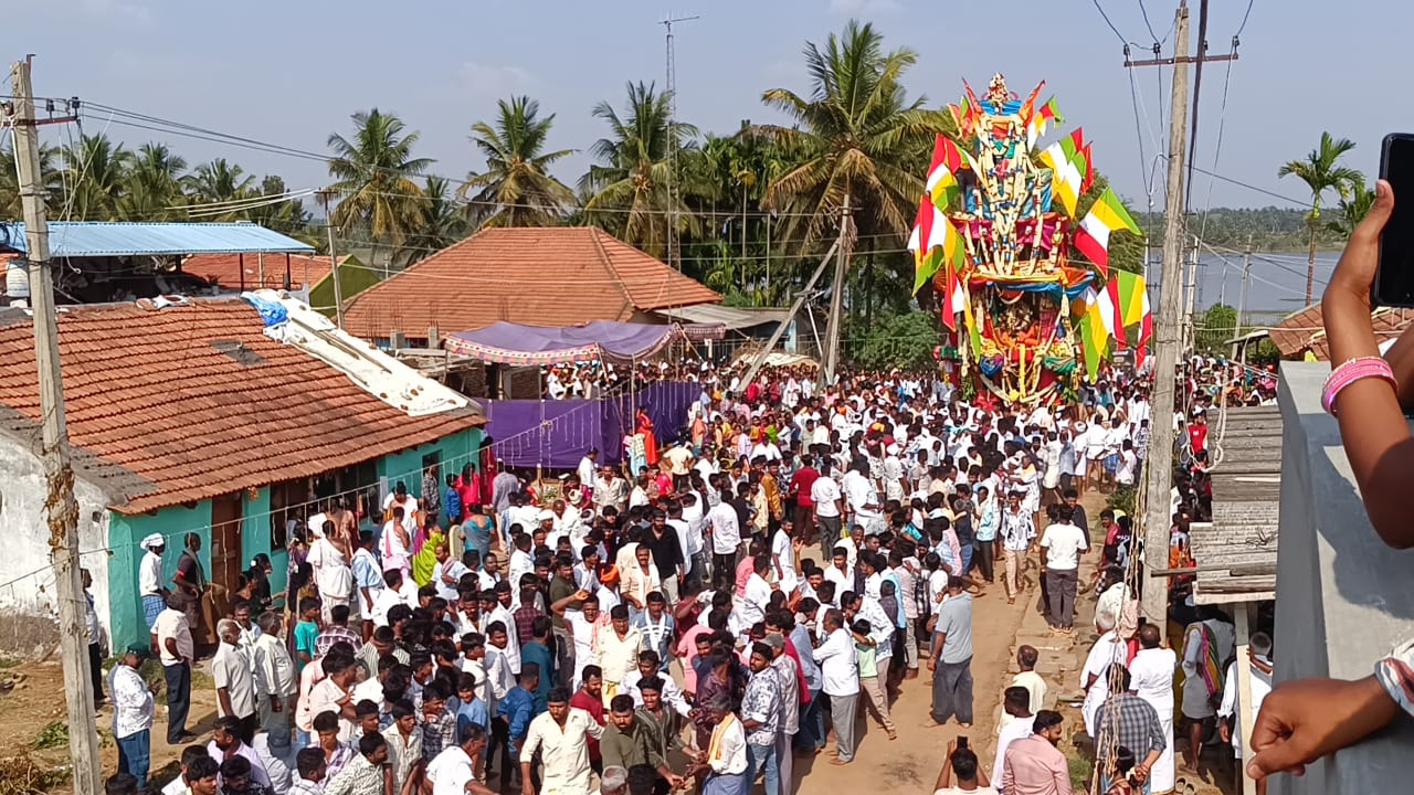 ಗ್ರಾಮದ ಯಜಮಾನರುಗಳು ಸಾಂಪ್ರದಾಯಿಕ ಪೂಜೆ ಸಲ್ಲಿಸಿ ರಥೋತ್ಸವಕ್ಕೆ ಚಾಲನೆ ನೀಡಿದರು. ಐದು ಅಂತಸ್ತಿನ ರಥವನ್ನು ಭಗವಾಧ್ವಜಗಳು, ಬಣ್ಣಬಣ್ಣದ ವಸ್ತ್ರಗಳು ಹಾಗೂ ವೈವಿಧ್ಯಮಯ ಹೂವುಗಳಿಂದ ಅಲಂಕರಿಸಲಾಗಿತ್ತು. ರಥದ ತುದಿಯಲ್ಲಿ ಪ್ರತಿಷ್ಠಾಪಿಸಲಾದ ಕಂಚಿನ ಕಳಶವು ವಿಶೇಷ ಆಕರ್ಷಣೆಯಾಗಿತ್ತು.