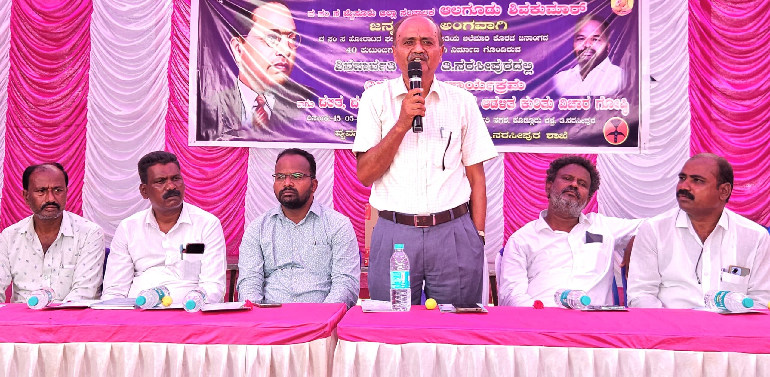 ದಸಂಸ ಮೈಸೂರು ಜಿಲ್ಲಾ ಸಂಚಾಲಕ ಆಲಗೂಡು ಶಿವಕುಮಾರ್ ಜನ್ಮ ದಿನದ ಅಂಗವಾಗಿ ದಸಂಸ ಹೋರಾಟದ ಫಲ ಪರಿಶಿಷ್ಟ ಜಾತಿಯ ಅಲೆಮಾರಿ ಕೊರಚ ಸಮುದಾಯದ 40 ಕುಟುಂಬಗಳಿಗೆ ನೂತನವಾಗಿ ನಿರ್ಮಾಣಗೊಂಡಿರುವ ಶಿವಪಾರ್ವತಿ ನಗರದಲ್ಲಿ ಗಿಡ ನೆಟ್ಚು ದಲಿತ,ದಮನಿತರ ಮತ್ತು ಸಮಕಾಲೀನ ಆಡಳಿತ ಕುರಿತ ವಿಚಾರ ಗೋಷ್ಠಿಯಲ್ಲಿ ಮುಖ್ಯ ಅತಿಥಿಗಳಾಗಿ ಭಾಗವಹಿಸಿ ಮಾತನಾಡಿ ನಿಮ್ಮ ಉದ್ಧಾರ ಶಿಕ್ಷಣದಿಂದ ಮಾತ್ರ ಸಾಧ್ಯ.ನಿಮ್ಮ ಬಹಳಷ್ಟು ಮಕ್ಕಳು ತುಂಬಾ ಬುದ್ದಿವಂತರಿರುತ್ತಾರೆ.ಅವರನ್ನು ಶಾಲೆಗೆ ಸೇರಿಸಿ ಅವರಿಗೆ ಶಿಕ್ಷಣ ಕೊಡಿಸಬೇಕೆಂದರು.