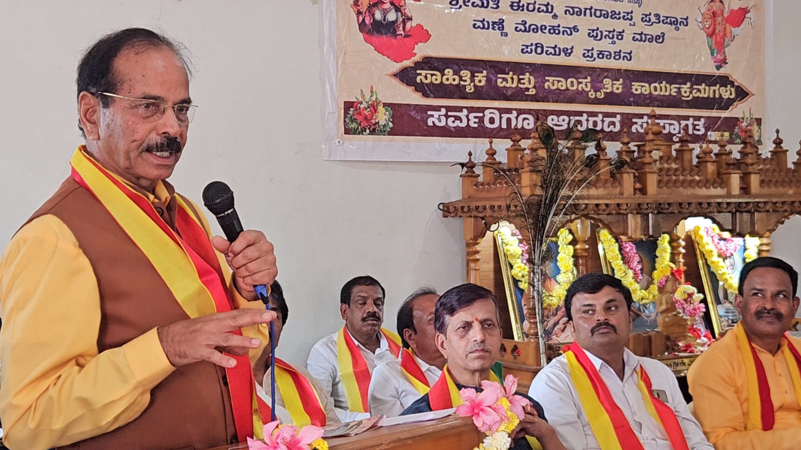 ತಾಲ್ಲೂಕಿನ ಯಾಚೇನಹಳ್ಳಿ ಗ್ರಾಮದಲ್ಲಿರುವ ವೃದ್ಧಾಶ್ರಮದ ಸಭಾಂಗಣದಲ್ಲಿ ಜ್ಞಾನಗಂಗಾ ಸಾಹಿತ್ಯ ಮತ್ತು ಸಾಂಸ್ಕೃತಿಕ ರಂಗದ ಅಧ್ಯಕ್ಷರಾದ ಮಣ್ಣೆ ಮೋಹನ್ ರವರು ಮತ್ತು ಶ್ರೀ ರಾಮಕೃಷ್ಣ ಸೇವಾ ಕೇಂದ್ರ ಟ್ರಸ್ಟ್ ನ ಶ್ರೀ ನಾದಾನಂದನಾಥ ಸ್ವಾಮೀಜಿಯವರ ಸಹಯೋಗದಲ್ಲಿ ಹೊತ್ತಿಗೆ ಲೋಕಾರ್ಪಣೆ, ಸಾಧಕ ಜೀವಿಗಳಿಗೆ ಸನ್ಮಾನದ ದೀವಿಗೆ , ವಿಚಾರ ಗೋಷ್ಠಿ, ಸಾಂಸ್ಕೃತಿಕ ಗೋಷ್ಠಿ ಹಾಗೂ ಕವಿಗೋಷ್ಠಿ ಕಾರ್ಯಕ್ರಮದಲ್ಲಿ ಭಾಗವಹಿಸಿ ರೈತರ ಇಂದಿನ ಸಂಕಷ್ಟ ಮತ್ತು ಅದರ ಪರಿಹಾರ ಕುರಿತು ಮಾತನಾಡಿ ಕೊರೋನ ಬಂದ ಸಂದರ್ಭದಲ್ಲಿ ಹೊರ ರಾಷ್ಟ್ರಗಳು ಒಂದು ಮಾತನ್ನು ಹೇಳಿದ್ದವು ಕೊರೋನದಿಂದ ಭಾರತ ಹೆಚ್ಚು ಸಾವು ಮತ್ತು ನೋವನ್ನು ಅನುಭವಿಸಿ ಆರ್ಥಿಕ ಸಂಕಷ್ಟದಿಂದ ಹೊರ ಬರಲು ಸಾಧ್ಯವಾಗುವುದಿಲ್ಲ.ಜಿಡಿಪಿಯಲ್ಲಿ 20 ವರ್ಷ ಹಿಂದಕ್ಕೆ ಹೋಗಲಿದೆ ಎಂದಿದ್ದರು.6.5 ಇದ್ದ ಜಿಡಿಪಿ ಕೊರೋನ ಬಂದು ಹೋದ ಎರೆಡು ವರ್ಷದ ನಂತರ 8.8 ಜಿಡಿಪಿ ಬಂತು.ಕಾರಣ ರೈತರು ಯಾವುದೇ ಕೊರೋನಾಗೂ ಹೆದರದೆ ತಮ್ಮ ಕಾಯಕವನ್ನು ಹೊಲ,ಗದ್ದೆಗಳಲ್ಲಿ ಮಾಡಿದ್ದರ ಫಲ.ಪ್ರಪಂಚದಲ್ಲಿ ಯಾವುದೇ ಟೆಕ್ನಾಲಜಿ ಬಂದರೂ ಹಾಗೂ ದೇವರುಗಳಿಂದಲೂ ಸಹ ರೈತರು ಬೆಳೆಯುವ ಆಹಾರ ಪದಾರ್ಥಗಳನ್ನು ಜೆರಾಕ್ಸ್ ಕೂಡ ಮಾಡಲು ಸಾಧ್ಯವಿಲ್ಲ. ರೈತ ಭೂಮಿಯನ್ನು ಉಳುಮೆ ಮಾಡಿ ಫಸಲು ತೆಗೆದರೆ ಭಾರತ ಸೇರಿದಂತೆ ಇಡೀ ಪ್ರಪಂಚದ ಜನರಿಗೆ ಹೊಟ್ಟೆ ತುಂಬಿಸಲು ಸಾಧ್ಯ ಎಂದರು.
