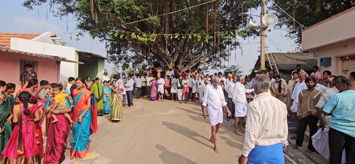 ಗ್ರಾಮದ ಮುಖ್ಯ ರಸ್ತೆಯುದ್ದಕ್ಕೂ ನೆರೆದಿದ್ದ ಭಕ್ತರು ತಮ್ಮ ಮನೆಯಂಗಳದ ಮುಂದೆ ನಿಂತು ಇಷ್ಟಾರ್ಥ ಸಿದ್ದಿಗಾಗಿ ಬಂಜಿಗೆ ಬಾಳೆ ಗೊನೆಯನ್ನು ಅರ್ಪಿಸಿ,ಬೃಹತ್ ಹೂವಿನ ಹಾರಗಳನ್ನು ಹಾಕಿ ಕುಟುಂಬಕ್ಕೆ ಹಾಗೂ ಗ್ರಾಮಕ್ಕೆ ಒಳಿತಾಗಲೆಂದು ಬೇಡಿಕೊಂಡರು.