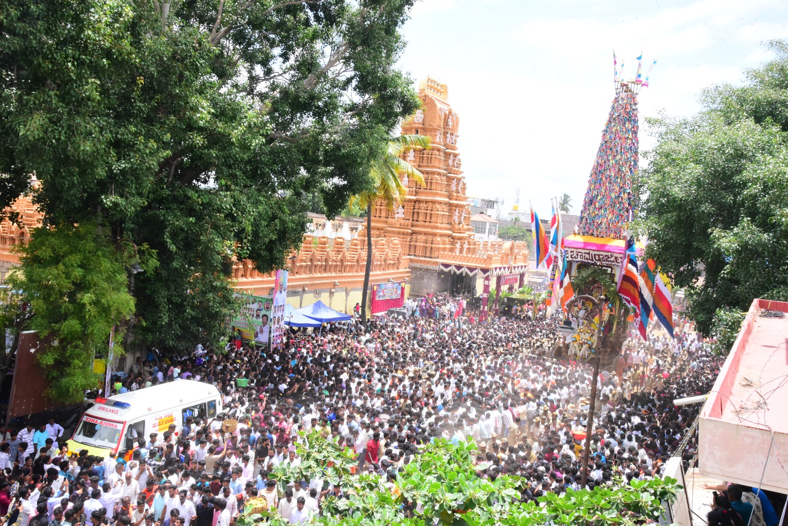 ರಥಕ್ಕೆ ಚಾಲನೆ ದೊರೆಯುತ್ತಿದ್ದಂತೆಯೇ ಭಕ್ತರ ಹರ್ಷೋದ್ಘಾರ ಮುಗಿಲು ಮುಟ್ಟಿತು. ಶಾಸಕ ಸಿ.ಪುಟ್ಟರಂಗಶೆಟ್ಟಿ, ಜಿಲ್ಲಾಧಿಕಾರಿ ಶಿಲ್ಪಾನಾಗ್, ಜಿಲ್ಲಾ ಪೊಲೀಸ್ ವರಿಷ್ಠಾಧಿಕಾರಿ ಡಾ.ಬಿ.ಟಿ.ಕವಿತಾ ಮತ್ತು ಇತರರು ಇದ್ದರು.