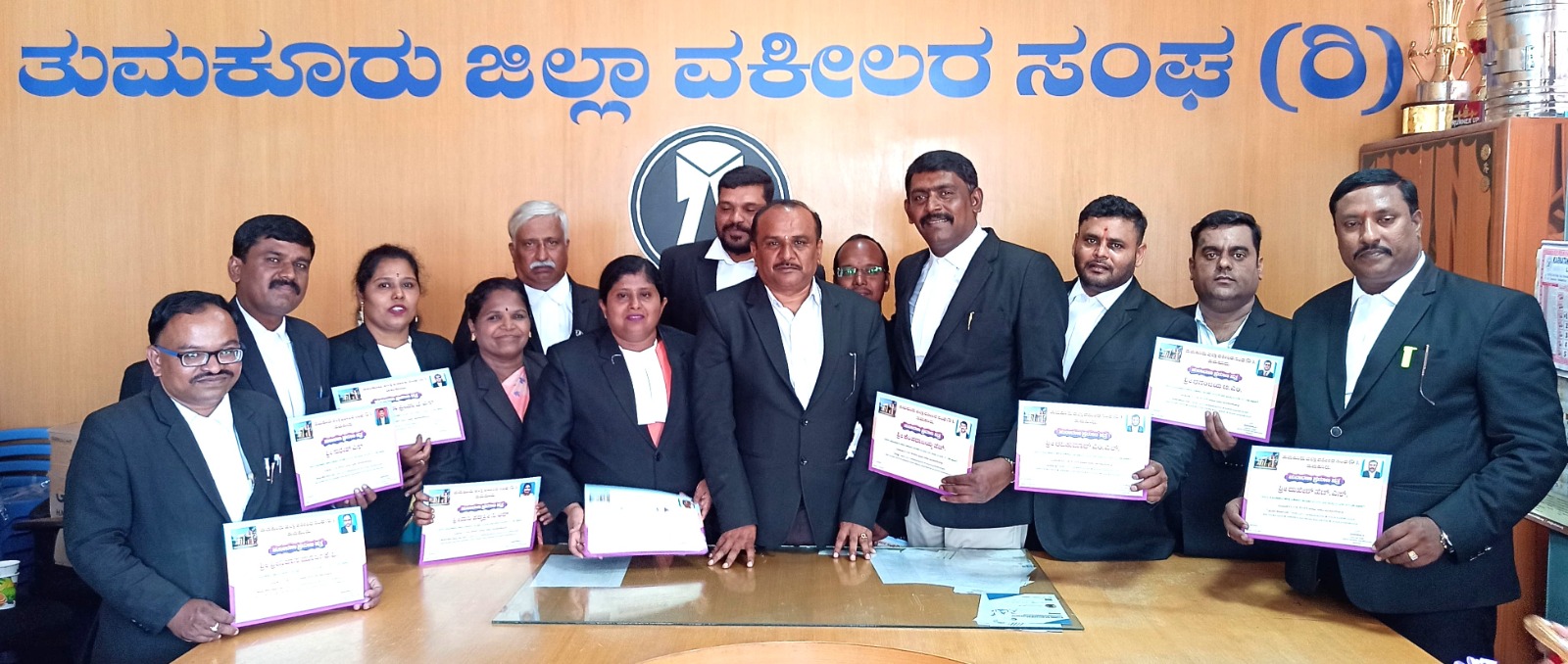 ತುಮಕೂರು – ಜಿಲ್ಲಾ ವಕೀಲರ ಸಂಘದ 2025-27ನೇ ಸಾಲಿನ ಚುನಾವಣೆ-ಚುನಾಯಿತ ಅಭ್ಯರ್ಥಿಗಳಿಗೆ ಪ್ರಮಾಣಪತ್ರ ವಿತರಣೆ