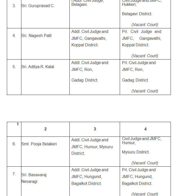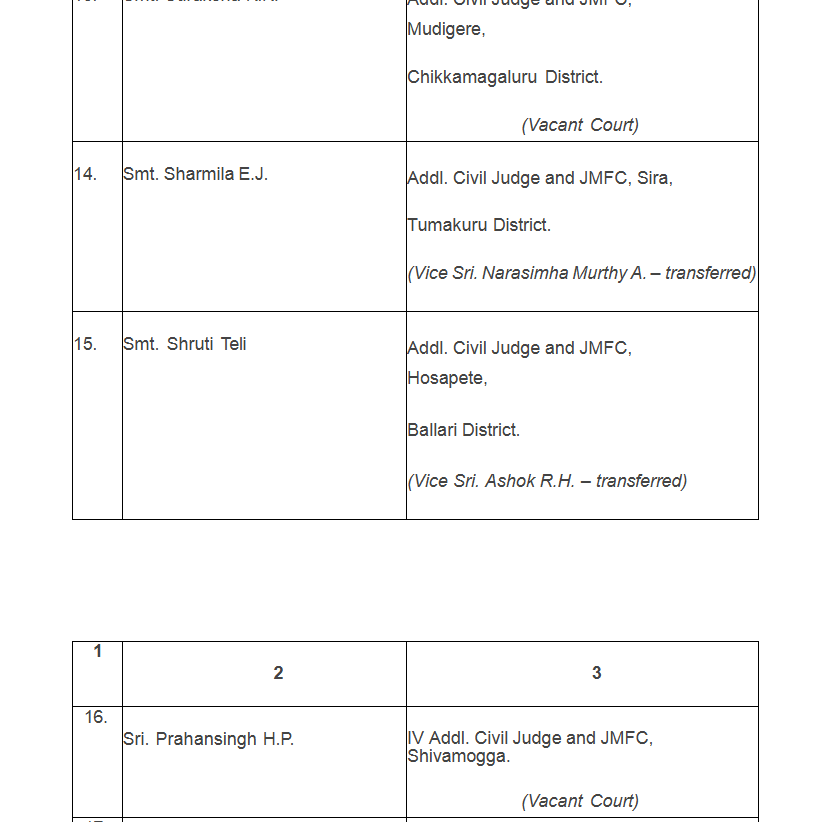 ವರ್ಗಾವಣೆಗೊಂಡಿರುವ ನ್ಯಾಯಾಧೀಶರುಗಳ ಪಟ್ಟಿ ಇಲ್ಲಿದೆ: