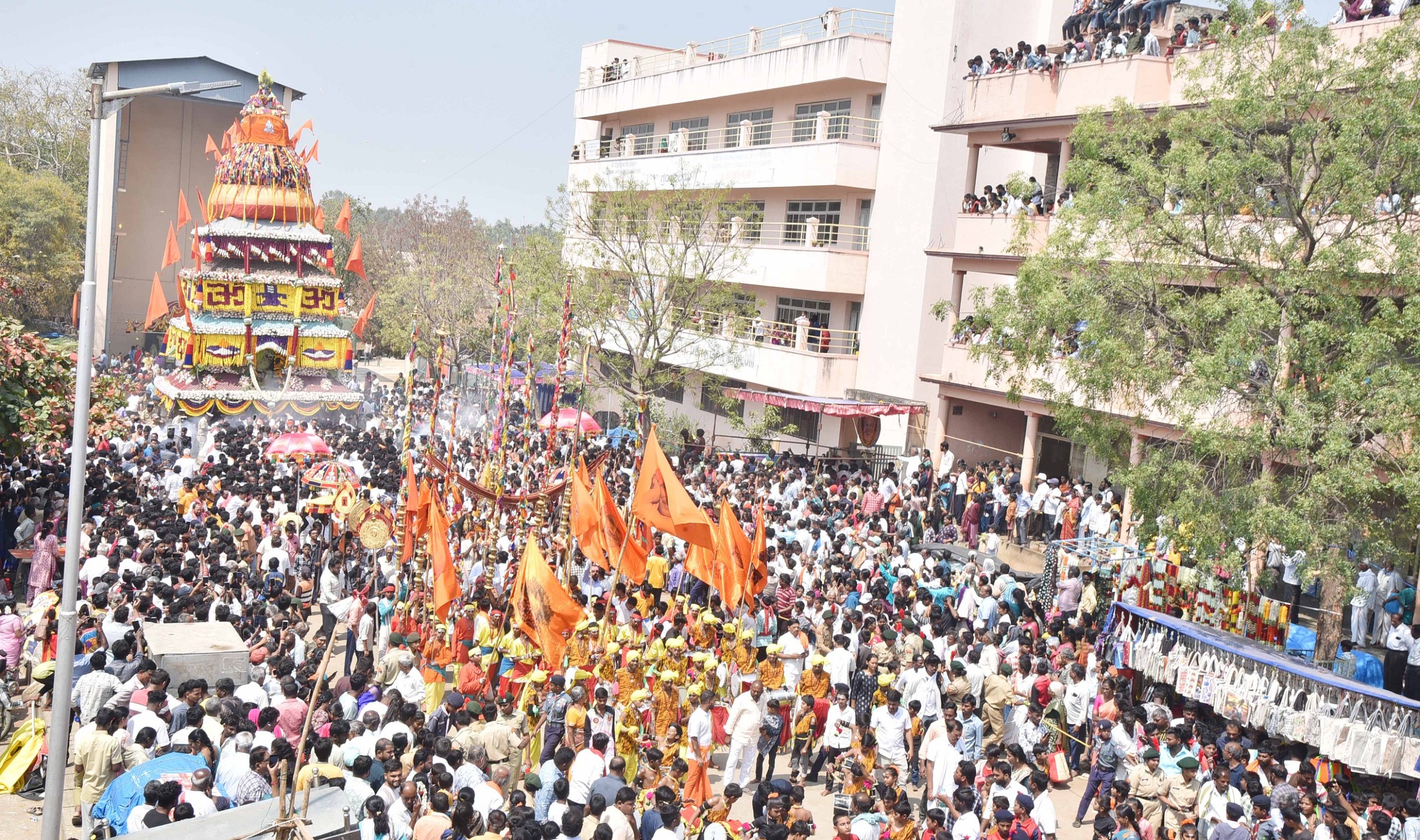 ರಥ ಸಾಗಿದ ದಾರಿಯುದ್ದಕ್ಕೂ ನಂದಿಧ್ವಜ, ಕರಡಿ ಮಜಲು, ನಾಗಸ್ವರ, ವೀರಗಾಸೆ, ಪಟಕುಣಿತ, ಡೋಲು ಕುಣಿತ ಸೇರಿದಂತೆ ವಿವಿಧ ಜಾನಪದ ಕಲಾ ತಂಡಗಳ ಪ್ರದರ್ಶನ ನೆರೆದಿದ್ದ ಭಕ್ತ ಸಮೂಹವನ್ನು ಆಕರ್ಷಿಸಿದವು.