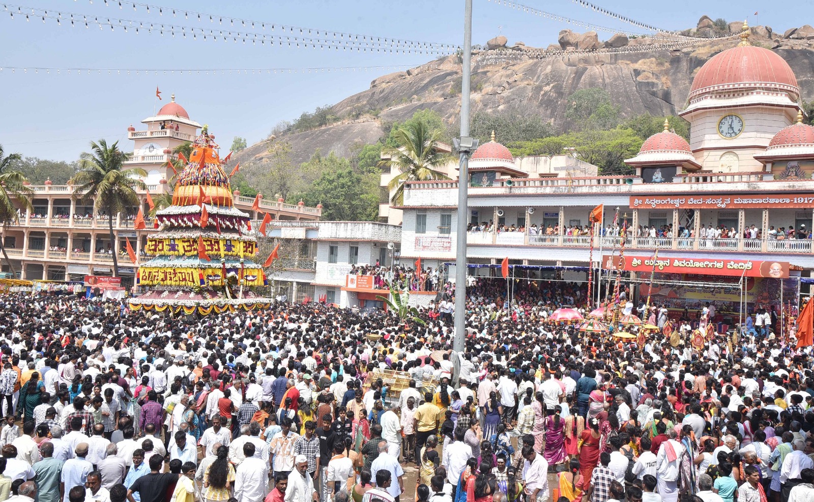 ತುಮಕೂರು- ಐತಿಹಾಸಿಕ ಪ್ರಸಿದ್ಧ ಸಿದ್ದಗಂಗೆಯಲ್ಲಿ ಶ್ರೀ ಸಿದ್ದಲಿಂಗೇಶ್ವರ ಸ್ವಾಮಿಯ ಮಹಾರಥೋತ್ಸವ ವಿವಿಧ ಧಾರ್ಮಿಕ ವಿಧಿ ವಿಧಾನಗಳೊಂದಿಗೆ ಸಹಸ್ರಾರು ಭಕ್ತರ ಸಮ್ಮುಖದಲ್ಲಿ ಅತ್ಯಂತ ವಿಜೃಂಭಣೆಯಿಂದ ನಡೆಯಿತು.
